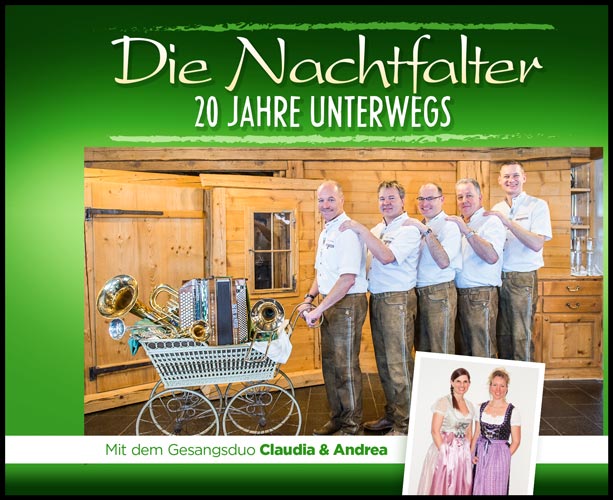 Wir haben grosse Freude, zu unserem Jubiläum die CD "Die Nachtfalter - 20 Jahre unterwegs" herauszugeben. Unser erster Tonträger enthält einen Querschnitt durch unser Repertoire. Während den letzten Monaten durften wir, zusammen mit dem Gesangsduo Claudia & Andrea, unsere ersten professionellen Aufnahmeerfahrungen im Tyrolis-Studio machen.
